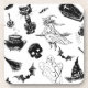 Objets d'Halloween dessinés sur papier, puis tracés dans Illustrator pour créer motif.