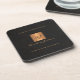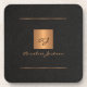 Luxury elegant black leather look coaster with a gold glitter monogrammed square and personalized name signature.