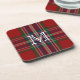Dessous de verre faits sur commande rouges élégants de monogramme avec le motif traditionnel de plaid de tartan de MacFarlane de clan. Un grand monogramme de lettre du blanc un décore le milieu, et est personnalisable à n'importe quelle lettre que vous voulez.