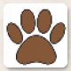 Empreinte de patte chien avec effet pixel appliqué à l'image. Dessin original en noir et marron.