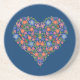 Un dessous de verre rond en grès, avec un motif floral en forme de cœur sur un fond bleu que vous pouvez modifier si vous le souhaitez. Fait partie de la collection 'Folk Heart' de Posh & Painterly, inspirée de l'art populaire d'Europe de l'Est.