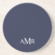 Classic design features personalized 3 letter initial monogram in white classic serif font style on navy blue background.