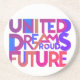 Un design moderne et énergique avec le texte "United Dreams Proud Future" en caractères gras et géométriques. Les couleurs sont vives et attrayantes, créant une atmosphère dynamique et inspirante.