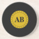 Conception personnalisée avec étiquette doré rond et modèle de texte personnalisé pour votre monogramme, sur arrière - plan noir