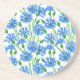 Dessous De Verre En Grès Fleurs d'eau bleu, fleurs sauvages sur blanc