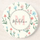 Dessous De Verre En Grès Joli Fleur d'ivoire blanc Élégant Monogramme rose