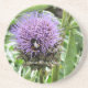 Une petite abeille occupée sur une fleur d'artichaut.