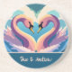 Ce dessous de verre personnalisable est composé d'un couple de cygnes debout la tête à la tête tout en formant un coeur sur des nuages magiques. C'est un design parfait pour un cadeau romantique de Saint Valentin ! Vous pouvez customiser les noms du couple !