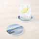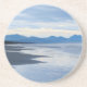 La belle plage avec des montagnes dans l'art de distance est sur ces dessous de verre de boisson.