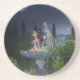 Jolie fée blonde prenant un bain dans une fontaine de jardin