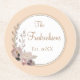Sur un fond beige classique, un cercle rond orné de fleurs d'aquarelle teintées de rose sombre et violet ombragées où au milieu vous pouvez le customiser avec votre nom de famille et l'année. Vibes modernes et élégantes.