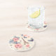 Dessous de verre en grès avec une élégante motif. Roses roses, papillons gris-bleu et tour Eiffel. Une motif à thème française.