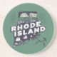 Stylish coaster features a retro style scenic Rhode Island vignette in a state shaped silhouette.