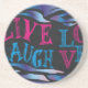 Zèbre rayures dans les teintes de bleu et de violet avec tableau noir coloré Live, Rire, Amour