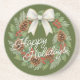 Dessous De Verre En Grès Terrain Décembre Classé Avec Vacances Bow Blanc