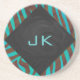 Dessous De Verre En Grès Zèbre Marron et sarcelle avec monogramme
