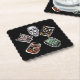 Les 5 personnages d'Halloween classiques sur un dessous de verre papier de fête d'Halloween dans une option sombre. Serez-vous la sorcière, le diable, le pirate, le chat ou le crâne à votre fête d'Halloween ?
