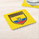 Le drapeau national de l'Equateur est infusé dans une fausse forme de bouclier doré avec le nom du pays ajouté au-dessus du drapeau.