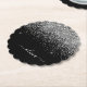 Parties scintillant à étincelles noir et argent Script Monogramme Nom Dessous de verre papier. Cela fait le cadeau parfait de remise de diplômes, anniversaire, mariage, douche nuptiale, anniversaire, baby shower ou bachelorette pour quelqu'un qui aime le luxe glam et les styles chic.