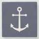 Dessous de verre minimaliste moderne en marbre marine avec ancre blanche sur arrière - plan bleu marine.