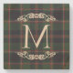 This elegant and contemporary beverage coaster features your family monogram and showcases a classic plaid pattern in shades of green, dark blue, and red. This design captures a classy and nostalgic English holiday ambiance. Making it ideal for decorating a classic colonial-style home, as well as a country cottage, log cabin, or vacation home by a lake or river.