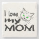 I Love My Mom texte et un dessin d'un chat drôle avec les yeux verts. Carré format produits, imprimés et cadeaux pour célébrer la fête des mères. Dessous de verre en pierre de chat amusant pour n'importe qui.