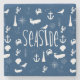 plage nautique et mer thème Typographie avec ancres, baleines, coquillages et plus encore en bleu marine et blanc dessous de verre en pierre