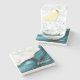 Ce dessous de verre élégant est doté d'une image numérique de marbre blanc et d'agate bleue turquoise, égayée de fausse parties scintillant argentée. Personnalisez-le avec votre nom en écriture manuscrite blanche.