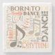 Danser votre passion ? Ce dessous de verre en pierre cool avec un design de nuage de mots dit tout. Certains mots, entrecoupés de notes musicales, sont : respirer, vivre, l'amour, la danse, le rythme et né à la danse. Cette version présente des tons chauds de brun, d'or et d'orange sur la couleur arrière - plan de votre choix. Recherchez ID277 pour voir d'autres options de couleur et faire correspondre les produits avec cette conception.