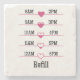 A refill chart: a playful way to track when it’s time to top up on coffee, water, food, or anything you crave. From 8 a.m. to 6 p.m., hearts start fully shaded and gradually fade, signaling it’s time for a refill.