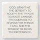 Prière de sérénité. Design minimaliste avec police de lumière gothique en noir. Citation intemporelle pour la dépendance, l'anxiété, et la vie en général. Don d'encouragement.