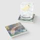 Single koi swims in abstract water. Colorful design on marble coaster with cork back. Sold singly.