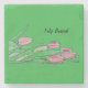 Colored pencil drawing outlined in black. Pink and yellow tulips make me think of the beauty of Springtime. Tulips come in many shapes and sizes, there is a tulip for everyone. May this design remind you to enjoy the beauty in simple things around you, as you use this coaster.