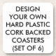 La coutume a imprimé les DESSOUS DE VERRE SOUTENUS PAR LIÈGE EN PLASTIQUE DUR personnalisés (PLACEZ 6) du modèle en blanc - 3,8" x 3,8". La conception, créent, font vos propres. Plastique à haute brillance avec le support antidérapant de liège. Surface chiffon-propre facile.