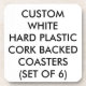 La coutume a imprimé les DESSOUS DE VERRE SOUTENUS PAR LIÈGE EN PLASTIQUE DUR personnalisés (PLACEZ 6) du modèle en blanc - 3,8" x 3,8". La conception, créent, font vos propres. Plastique à haute brillance avec le support antidérapant de liège. Surface chiffon-propre facile.