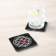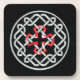 Ensemble de dessous de verre en plastique avec un noeud celtique et une croix de carré rouge au centre.