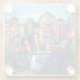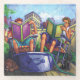 Art de la lecture estivale de Traci Van Wagoner présente un garçon et une fille assis dans un jardin urbain, les pieds dans un bain cool, en train de boire de la limonade et de lire des livres. Un chat et un chien s'allongent à leurs pieds sur le pont de bois. Parfait pour les amateurs de livres et de bibliophiles de tous âges.