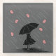 Jeu de remue-méninges avec la silhouette d'une fille marchant avec un parapluie pendant une tempête - avec des cerveaux.