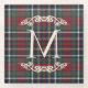 This elegant and contemporary beverage coaster features your family monogram and showcases a classic plaid pattern in shades of green, dark blue, and red. This design captures a classy and nostalgic English holiday ambiance. Making it ideal for decorating a classic colonial-style home, as well as a country cottage, log cabin, or vacation home by a lake or river.