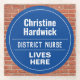 Amusant style commémoratif Plaque murale cadeau sous forme de Dessous de verre en verre pour une infirmière de district. Plaque bleue et blanche. Modifiez la conception pour modifier le libellé en fonction du destinataire du cadeau.