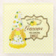 Design doux caractéristiques fille gnome avec le costume à motif citron, bordé panneau "Quand la vie vous donne des citrons, faire quelque chose de sucré" sur buffle jaune pastel plaid arrière - plan
