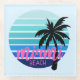 Miami Beach, ce design d'été présente un design bleu et rose avec un texte disant "Miami Beach".