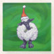 Dessous-de-verre En Verre Mignonne mouton à Santa Chapeau sur vert