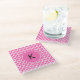 Monogramme blanc sur dessous de verre en verre motif de quatrefoil rose chaud.