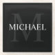 Dessous-de-verre En Verre Monogramme personnalisé et nom noir
