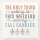 Ce design d'automne humoristique et cosy comprend la phrase spirituelle "La seule chose qui s'illumine ce week-end sont mes bougies d'automne" dans un mélange de polices audacieuses et élégantes. Le texte est aménagé de façon créative avec des tailles et des styles de police différents, ajoutant un intérêt visuel et un ton ludique. La palette de couleurs comprend des teintes chaudes d'automne comme l'orange brûlé, les verts terreux et les marron doux, qui évoquent la chaleur et le confort de la saison.