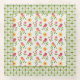 Panneau d'inspiration rétro Whimsical avec des oiseaux roses sur des branches avec des fleurs jaunes, entouré d'un motif de grille à points verts