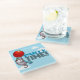 Un dessous de verre en verre comme cadeau de fête ou de décoration, avec un opossom mignon dans un casquette rayé, flottant sur un grand ballon rouge tout en soufflant une étoile fangled flower. Utilisez "Personnalisez ce modèle" pour modifier le texte "HEURE DU PARTI !".