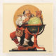 Artiste : Norman Rockwell | Père Noël étudie le globe tout en tenant un livre de "bons garçons"