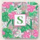 Dessous-de-verre Fleur tropicale Monogramme rose blanc vert Preppy